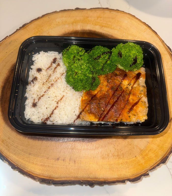 Enjoy a wholesome twist on a classic favorite with our 100% organic zucchini lasagna, layered with fresh zucchini slices, savory seasonings, and nutrient-rich ingredients for a lighter, gluten-free alternative to traditional pasta. Served with fluffy white rice and tender steamed broccoli, this dish offers a balanced combination of protein, fiber, and essential vitamins.
